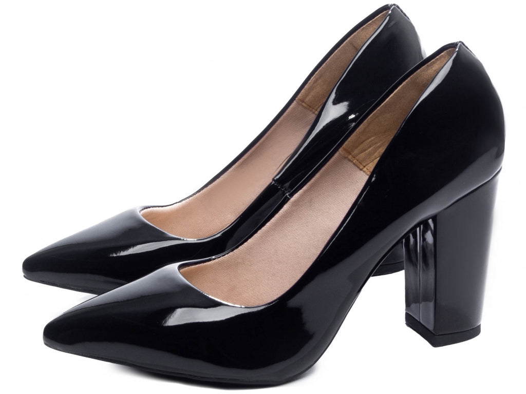 Garanta Já o Seu Sapato Scarpin Salto Quadrado Verniz Preto
